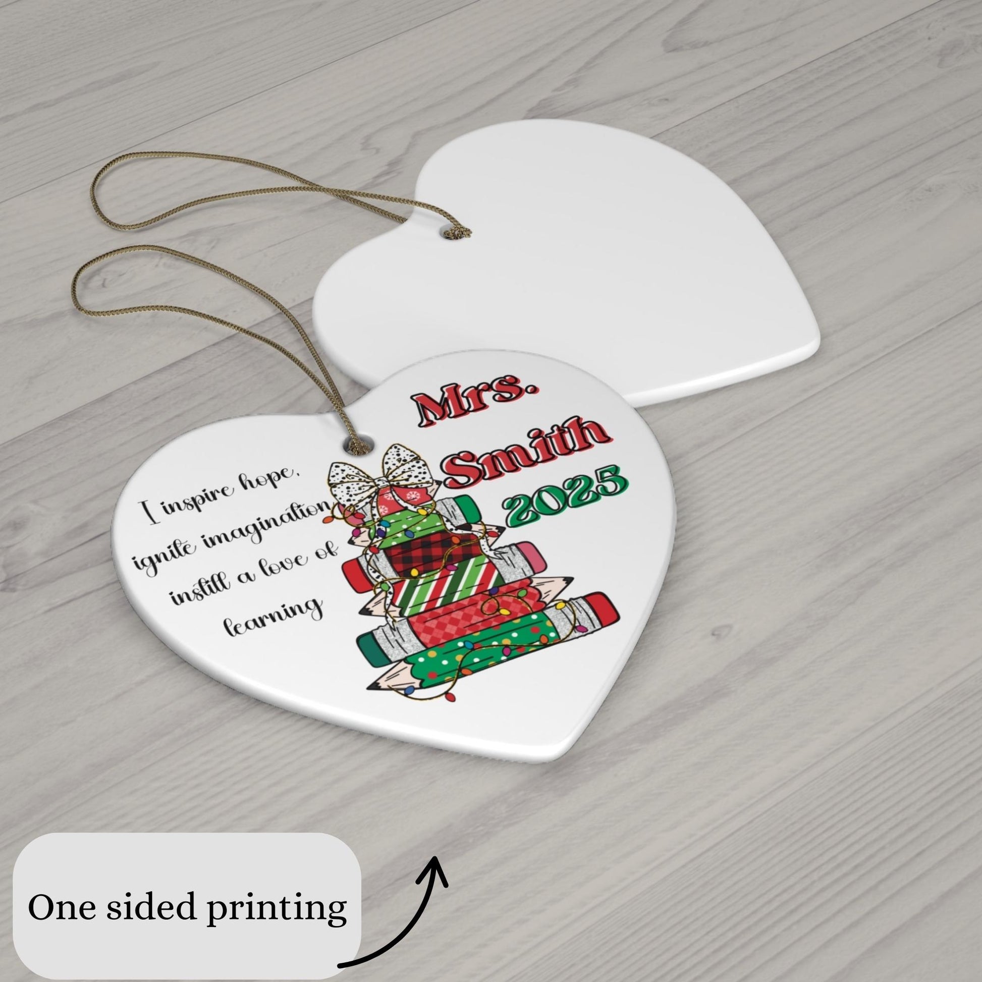 Custom Christmas Teacher name Holiday Appreciation ceramic Heart Shape ornament memory keepsake