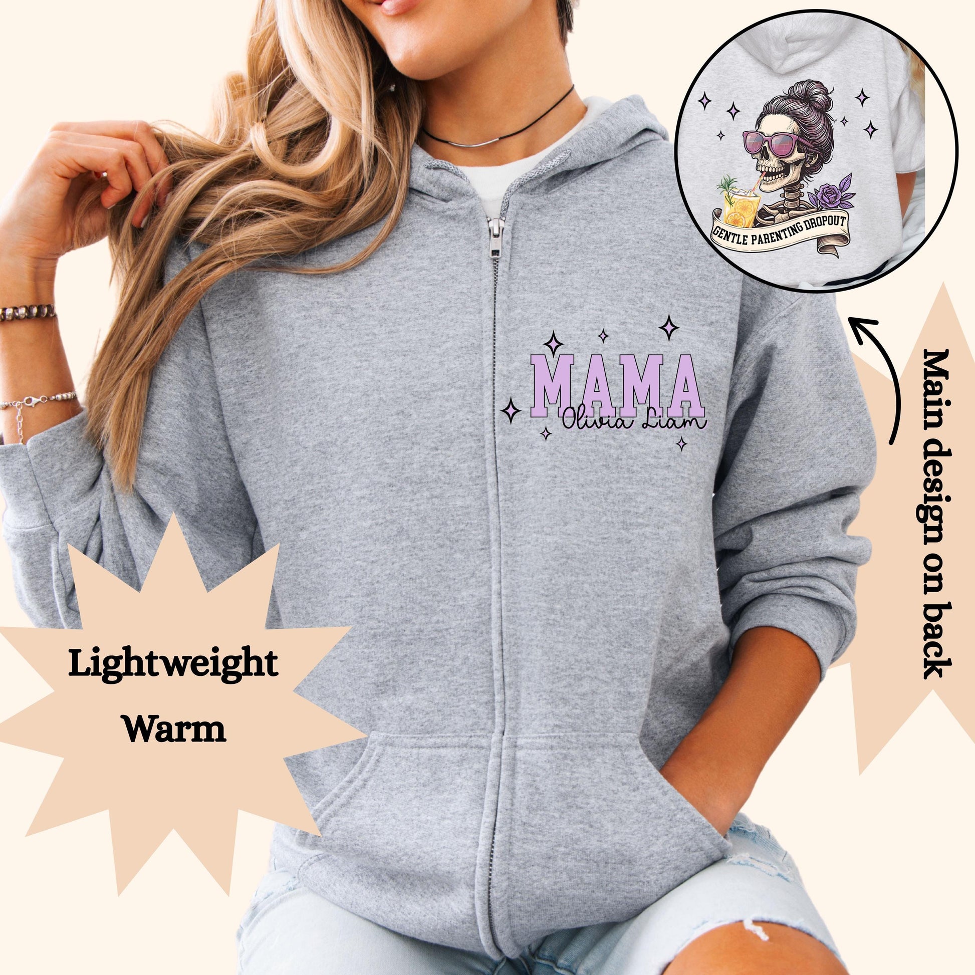 Custom hoodie full zip is a perfect gift for Mother’s Day gift from kids or a cute present for mom’s birthday. This funny mama sweatshirt offers cute mom gifts for her mother that are both cozy and thoughtful. ✨ Features: ✔️ Full zip-up closure for easy wear ✔️ Soft, cozy fabric perfect for layering ✔️ Personalized with name, "Mom," or "Mama" ✔️ Available in multiple colors & sizes ✔️ Thoughtful gift for Mother’s Day, birthdays, Christmas 🎁 Perfect For: — Mother’s Day gifts — Mom birthday gifts — Baby shower gifts for new moms — Everyday cozy wear 📏 Sizing: Runs true to size. Please refer to our size chart in the photos for the best fit! For a more oversize look go up a size or 2 and refer to the sizing chart. 🧵 How to Order: 1️⃣ Choose size & color 2️⃣ Enter personalization (Children's name ) 3️⃣ Add to cart & checkout Treat mom to something as special as she is 💛EU representative: HONSON VENTURES LIMITED, gpsr@honsonventures.com, 3, Gnaftis House flat 102, Limassol, Mesa Geitonia, 4003, CY Product information: Gildan 18600, 2 year warranty in EU and Northern Ireland as per Directive 1999/44/EC Warnings, Hazard: For adults, Made in Honduras Care instructions: Machine wash: warm (max 40C or 105F), Non-chlorine: bleach as needed, Tumble dry: medium, Iron, steam or dry: low heat, Do not dryclean