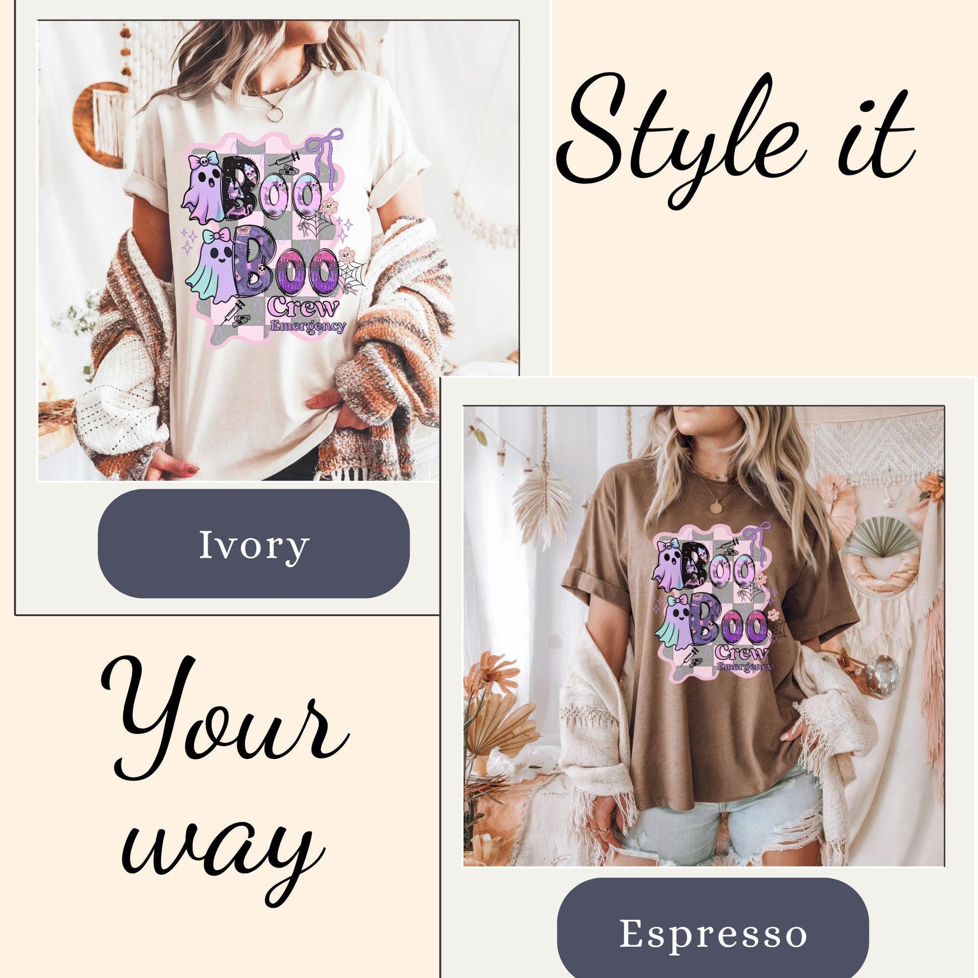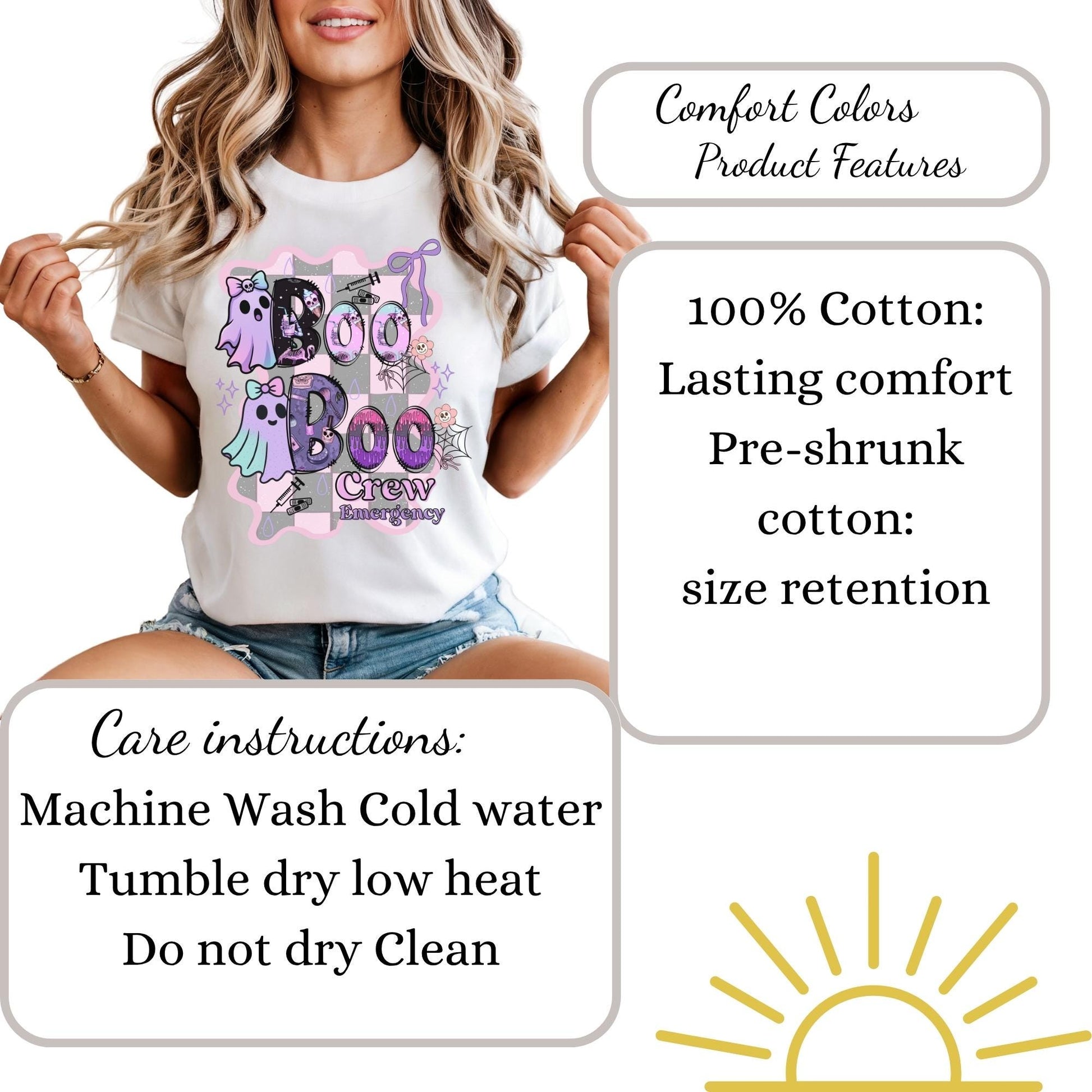 Halloween cute ghost work nurse shirt for emergency department nurses tee. ER LPN registered nurse fall autumn ghost Boo Boo Crew RN tshirt. Product Features • Comfort Colors 1717 unisex relaxed fit • 100% ring-spun cotton for ultra-soft feel • Garment-dyed for a vintage, lived-in look • Double-stitched sleeves and bottom hem for durability • Soft-washed and pre-shrunk to minimize shrinkage • Available in multiple trendy colors • Printed with high-quality professional inks Perfect For • Nurse Halloween • School nurse • Registered nurse • Fall nurse outfit • LPN RN Nurse • Comfortable everyday wear for healthcare workers Sizing Information • True unisex relaxed fit — size down for a more fitted look or size up for an oversized style • Please refer to the size chart in listing photos for measurements • Model is wearing size Medium for a relaxed fit Care Instructions • Machine wash cold inside out • Tumble dry low or hang dry for best longevity • Do not bleach • Do not iron directly on design