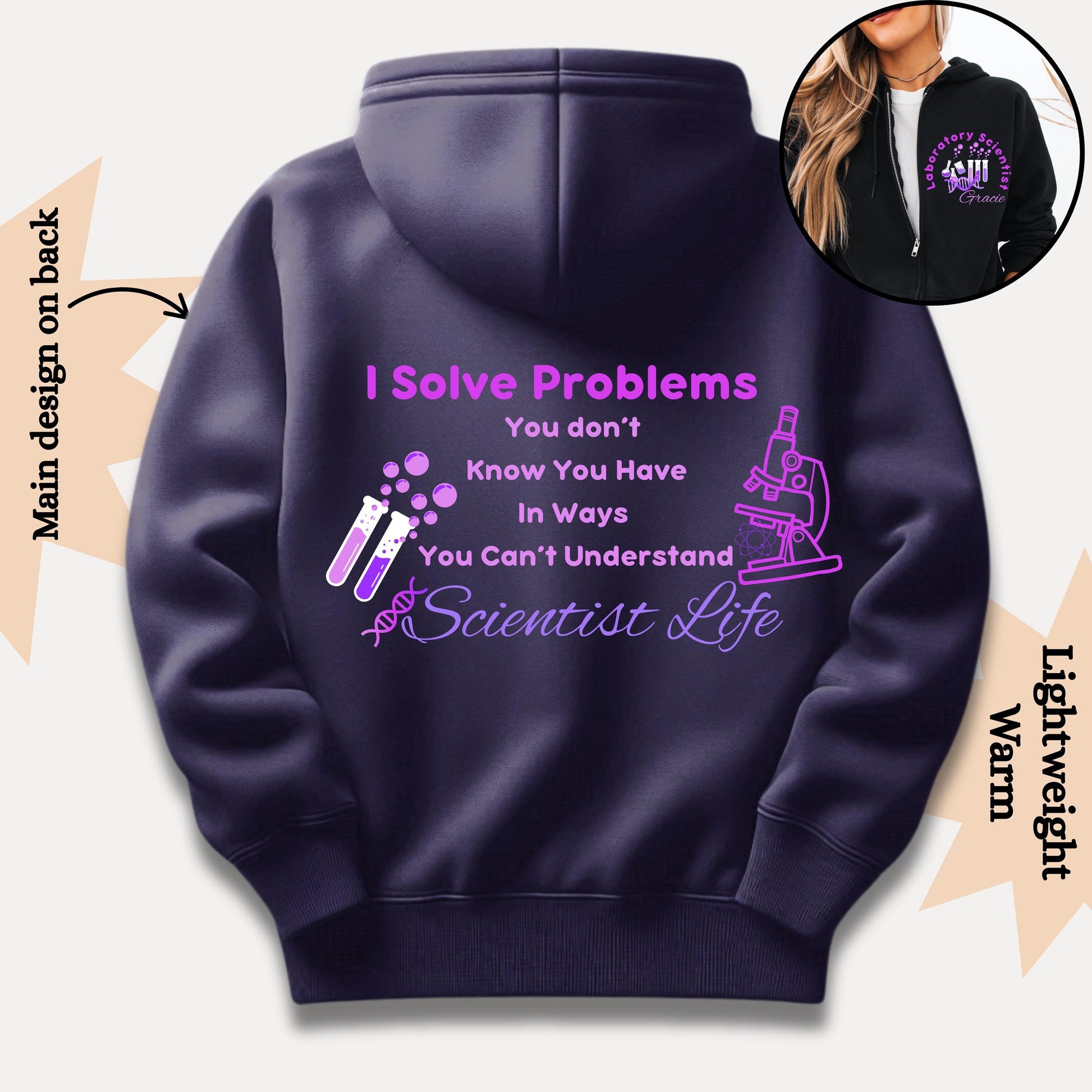 Medical Lab Scientist Zip Hoodie: Funny "I Solve Problems" Gift