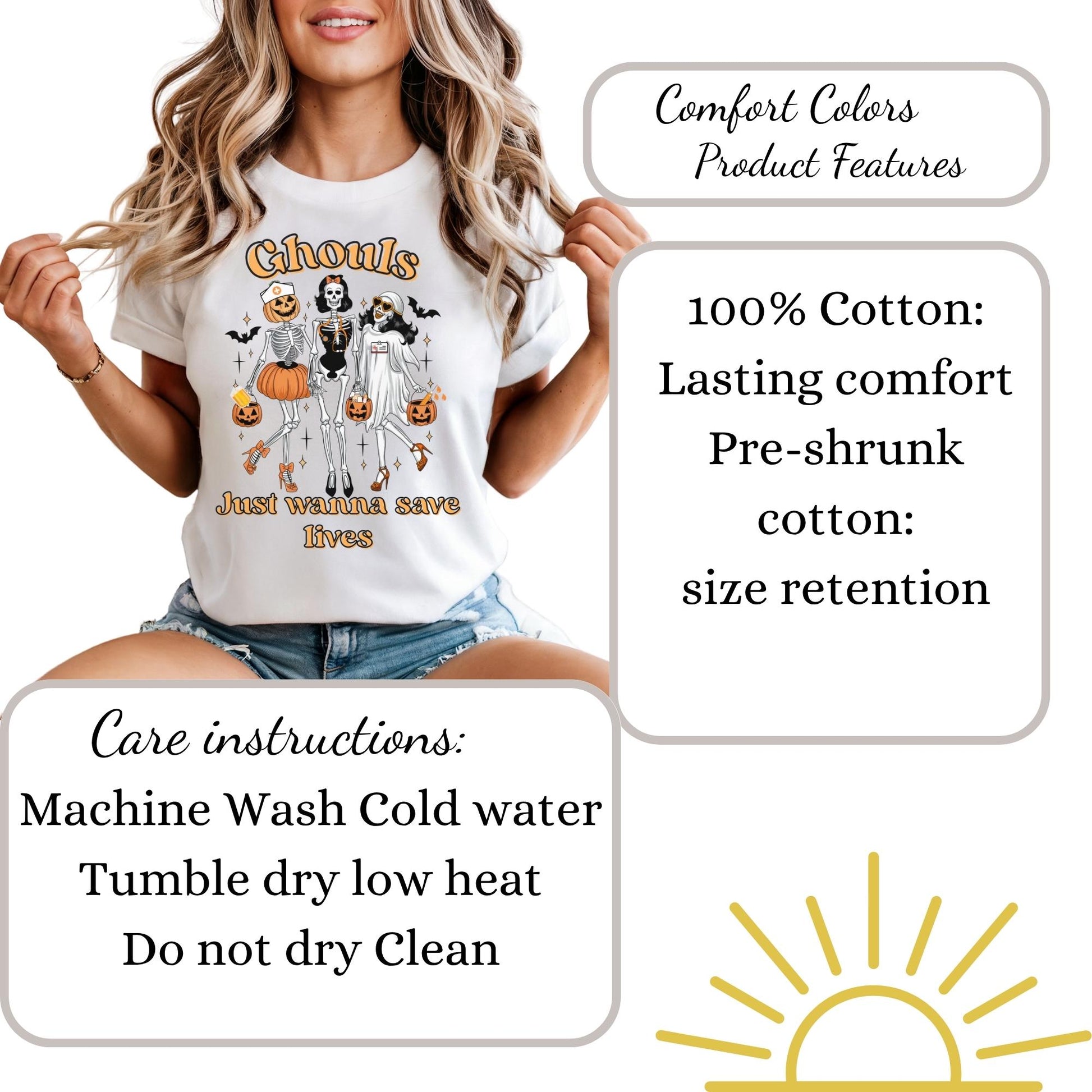 Halloween Nurse Ghouls TShirt is the perfect fall gift idea for spooky LPN, RN, or CNA. This autumn fall skeleton holiday work shirt comes in comfort color styles, making it a must-have Halloween nurse tee. Product Features • Comfort Colors 1717 unisex relaxed fit • 100% ring-spun cotton for ultra-soft feel • Garment-dyed for a vintage, lived-in look • Double-stitched sleeves and bottom hem for durability • Soft-washed and pre-shrunk to minimize shrinkage • Available in multiple trendy colors • Printed with high-quality professional inks Perfect For • Nurse Halloween • School nurse • Registered nurse • Fall nurse outfit • LPN RN Nurse • Comfortable everyday wear for healthcare workers Sizing Information • True unisex relaxed fit — size down for a more fitted look or size up for an oversized style • Please refer to the size chart in listing photos for measurements • Model is wearing size Medium for a relaxed fit Care Instructions • Machine wash cold inside out • Tumble dry low or hang dry for best longevity • Do not bleach • Do not iron directly on design
