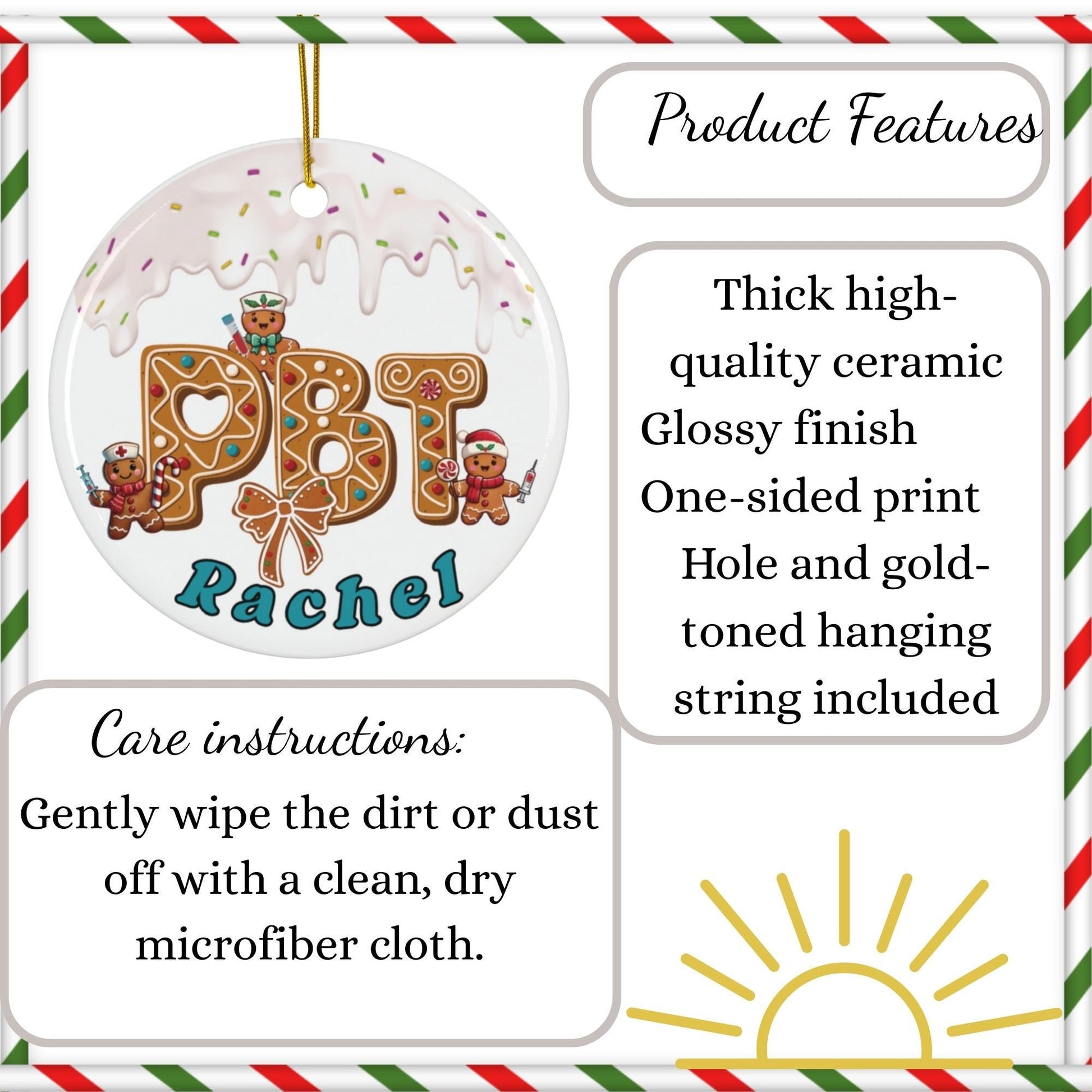 Gingerbread initial phlebotomy ornament Christmas gift idea for phlebotomist technician. Custom monogram name tree decoration phlebotomy keepsake. ✨ Features: *Premium ceramic construction for lasting durability *Vibrant, fade-resistant design one sided *Includes ribbon for easy hanging *Size: 2.76" diameter (approx.) 🎁 Perfect For: *New phlebotomist grads *Lab techs *Phlebotomy *End-of-year memory gifts * First christmas as a phlebotomist * Lab week Appreciation Care instructions - Gently wipe the dirt or dust off with a clean, dry microfiber cloth