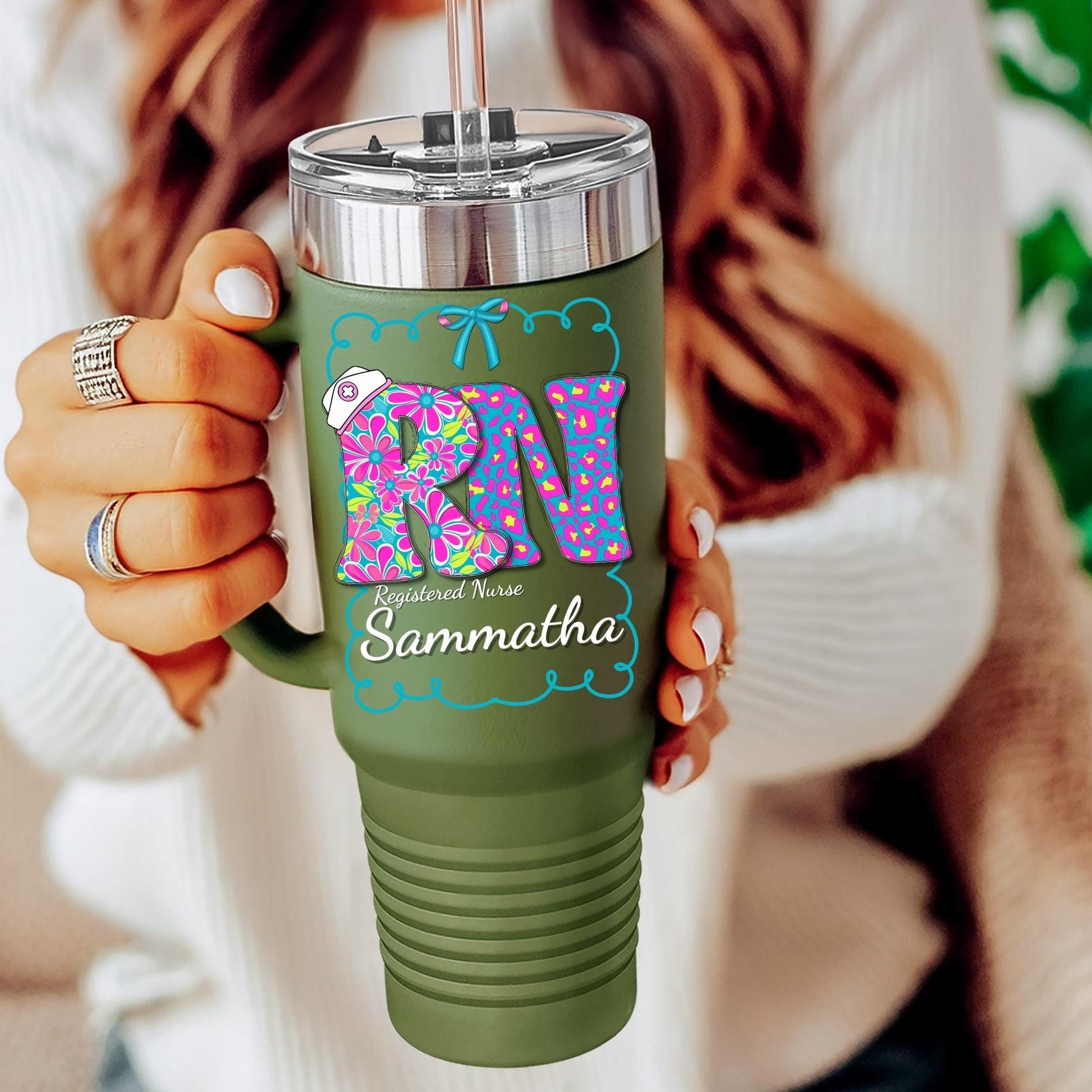 This 40 oz nurse tumbler is a personalized nurse cup, perfect for keeping drinks hot or cold during long shifts. Made from insulated stainless steel, it serves as a custom nurse travel tumbler and makes a thoughtful gift for any healthcare professional. Features: ✔️ 40 oz capacity — plenty of room for coffee, tea, or water to power long shifts ✔️ Double-wall vacuum insulated — keeps drinks hot or cold for hours ✔️ Durable Polar Camel quality — made to withstand busy nurse life ✔️ Personalized design — add a name, title, or custom text for a unique touch ✔️ Fits most cup holders — great for travel and med cart use ✔️ Comes with a clear slider lid and reusable straw Perfect for: 🌿 Nurse appreciation gift 🌿 Graduation gift for nursing student 🌿 Nurse week gift 🌿 RN, LPN, CNA cup 🌿 Personalized medical gift 🌿 Everyday shift essential 🌿 Christmas Gift Care Instructions: 🧽 Hand wash only — to preserve the vacuum seal and custom design 🚫 Do not microwave 🚫 Do not place in dishwasher 💧 Clean lid and straw thoroughly after each use Show the nurse in your life how much you care with a custom tumbler that works as hard as they do! ***Please allow 1 to 2 days for processing time **** To order make sure to look at all pictures ***** If any questions please reach out always here to help ***** \