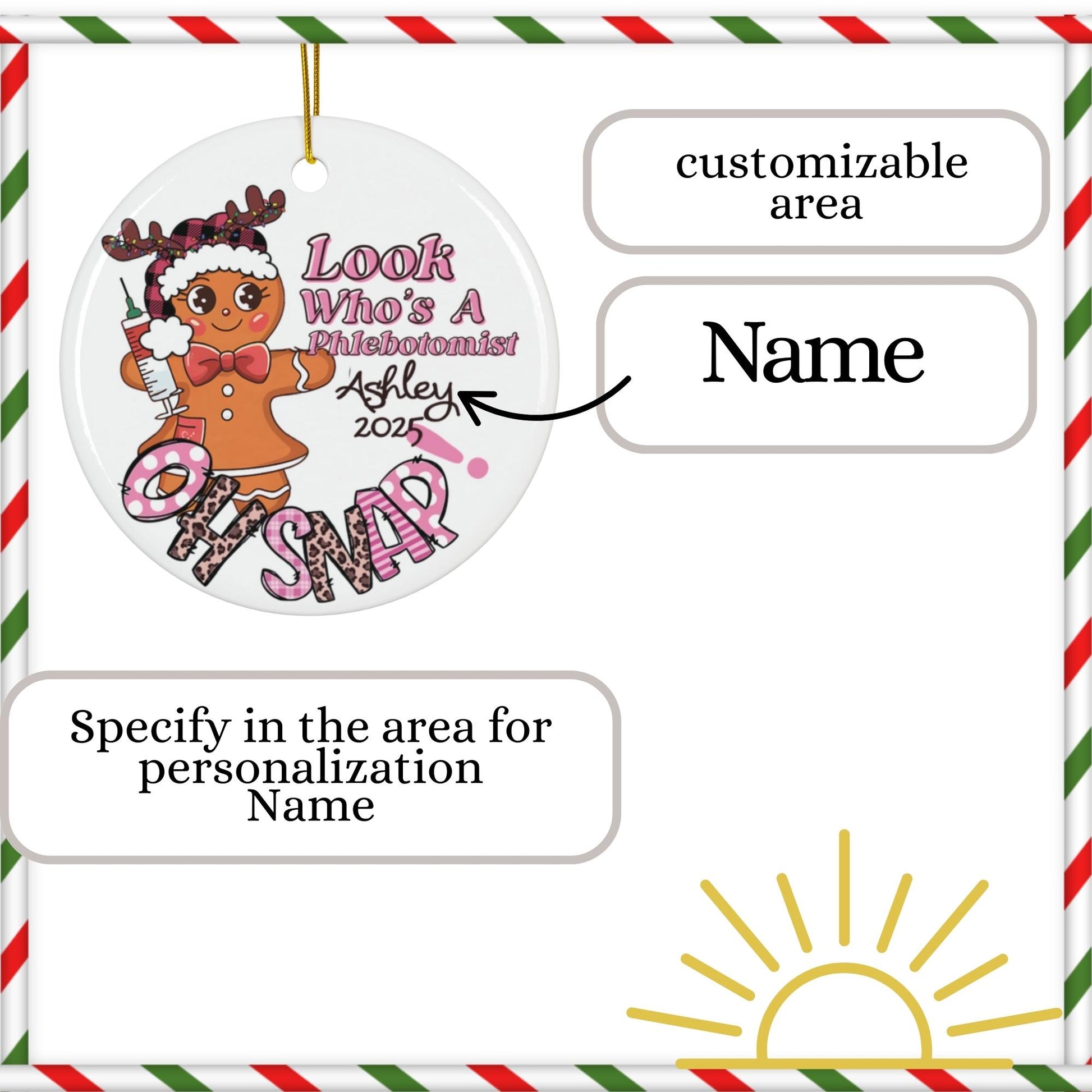 Personalized Phlebotomist Christmas ceramic ornament makes a perfect holiday tree decoration. This new phlebotomy graduation gift idea is a meaningful memory keepsake gift. ✨ Features: *Premium ceramic construction for lasting durability *Vibrant, fade-resistant design one sided *Includes ribbon for easy hanging *Size: 2.76" diameter (approx.) 🎁 Perfect For: *New phlebotomist grads *Lab techs *Phlebotomy *End-of-year memory gifts * First christmas as a phlebotomist * Lab week Appreciation Care instructions - Gently wipe the dirt or dust off with a clean, dry microfiber cloth