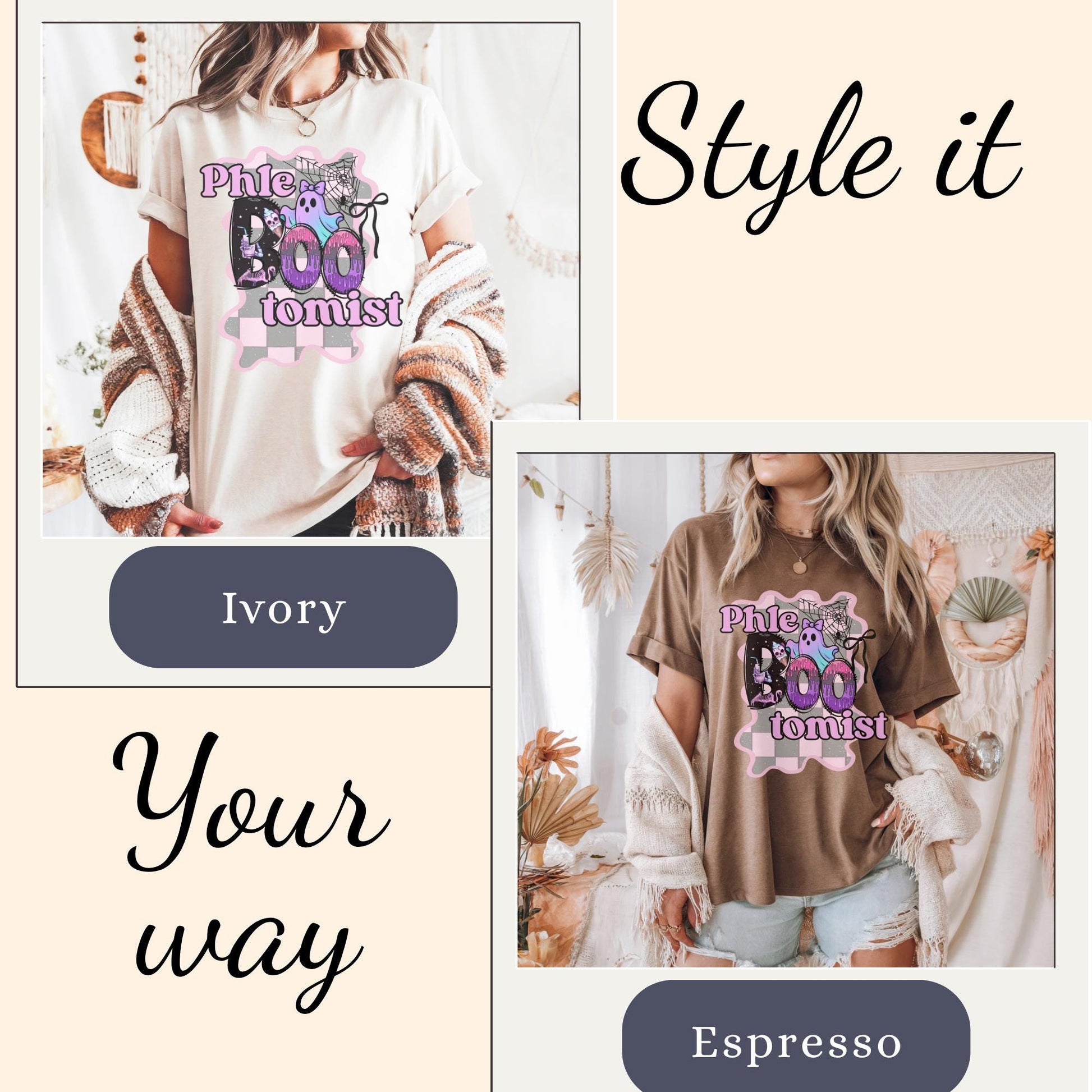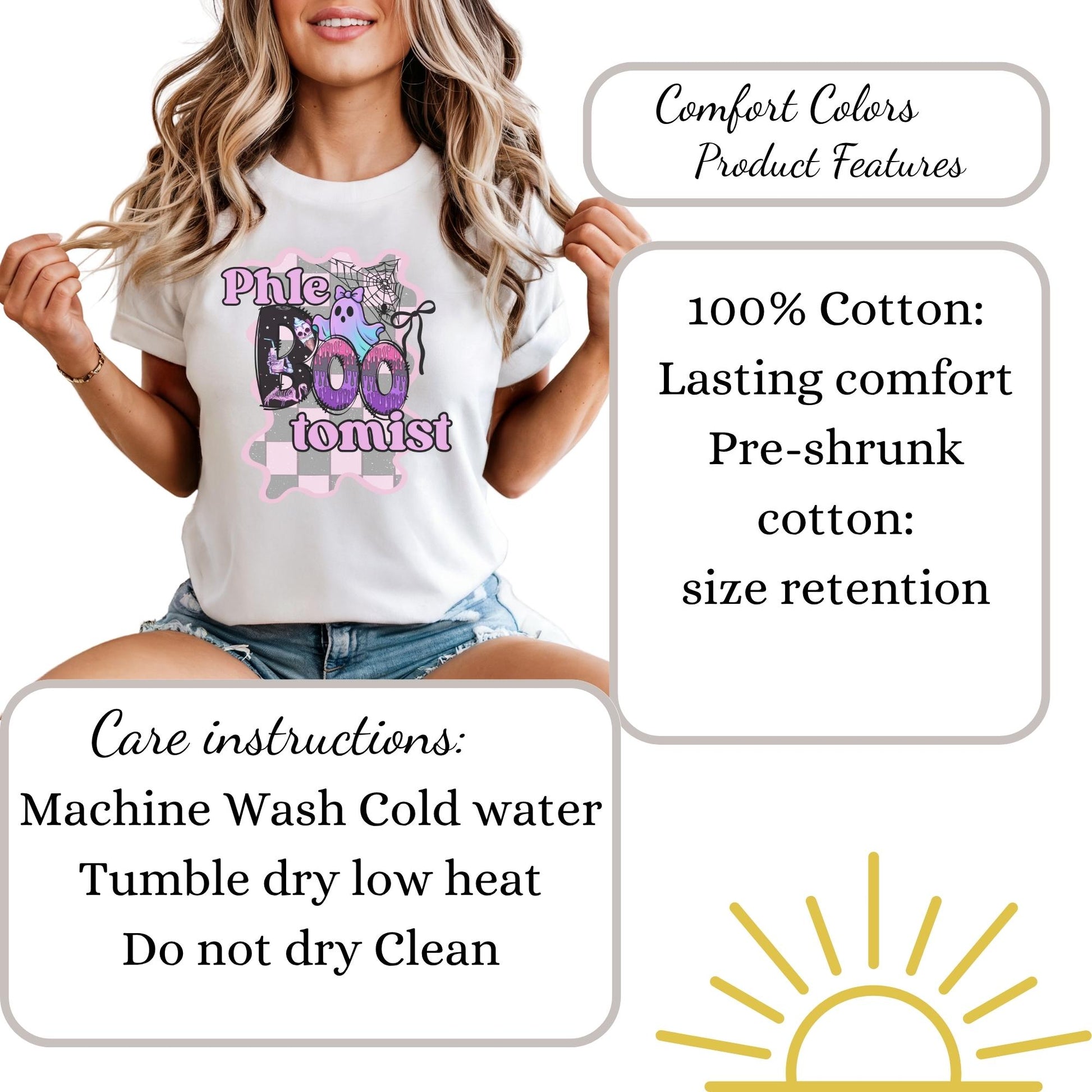This Phlebotomist Cute Ghost Halloween T-Shirt is the perfect spooky retro lab tech work attire. A fun and festive costume shirt for medical assistant Halloween outfits and coquette tee lovers. Product Features • Comfort Colors 1717 unisex relaxed fit • 100% ring-spun cotton for ultra-soft feel • Garment-dyed for a vintage, lived-in look • Double-stitched sleeves and bottom hem for durability • Soft-washed and pre-shrunk to minimize shrinkage • Available in multiple trendy colors • Printed with high-quality professional inks Perfect For • phlebotomist Week gifts • halloween fall phlebotomy • medical lab tech • laboratory assistant Sizing Information • True unisex relaxed fit — size down for a more fitted look or size up for an oversized style • Please refer to the size chart in listing photos for measurements • Model is wearing size Medium for a relaxed fit Care Instructions • Machine wash cold inside out • Tumble dry low or hang dry for best longevity • Do not bleach • Do not iron directly on design