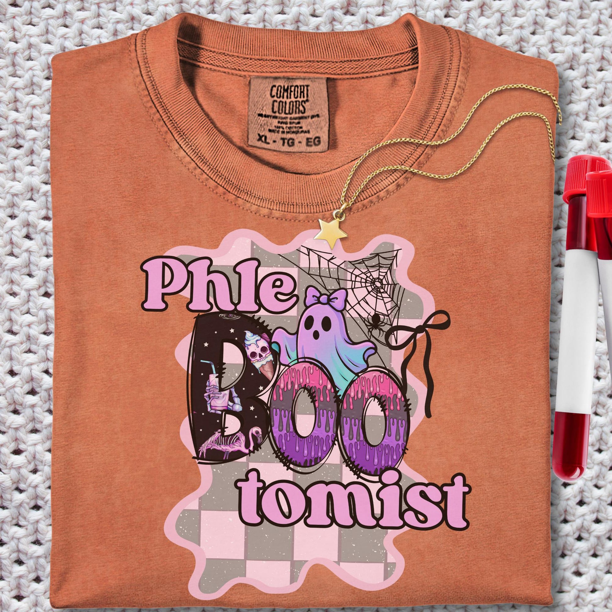 Phlebotomist Halloween T-Shirt: Spooky Ghost, Retro Lab Tech Costume