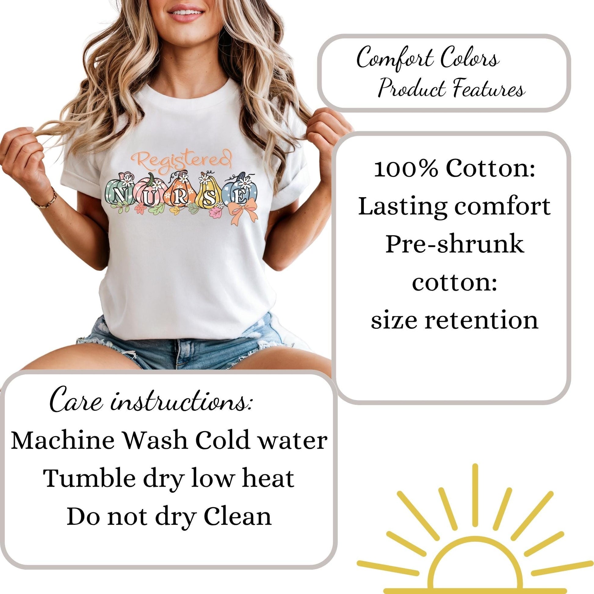 Registered Nurse Fall Pumpkin Comfort Colors T-shirt for Autumn season is the perfect RN gift idea tee for cozy seasonal vibes. This Thanksgiving retro floral pumpkin medical shirt makes a thoughtful gift for any nurse who loves fall. Product Features • Comfort Colors 1717 unisex relaxed fit • 100% ring-spun cotton for ultra-soft feel • Garment-dyed for a vintage, lived-in look • Double-stitched sleeves and bottom hem for durability • Soft-washed and pre-shrunk to minimize shrinkage • Available in multiple trendy colors • Printed with high-quality professional inks Perfect For • Nurse Halloween • School nurse • Registered nurse • Fall nurse outfit • LPN RN Nurse • Comfortable everyday wear for healthcare workers Sizing Information • True unisex relaxed fit — size down for a more fitted look or size up for an oversized style • Please refer to the size chart in listing photos for measurements • Model is wearing size Medium for a relaxed fit Care Instructions • Machine wash cold inside out • Tumble dry low or hang dry for best longevity • Do not bleach • Do not iron directly on design