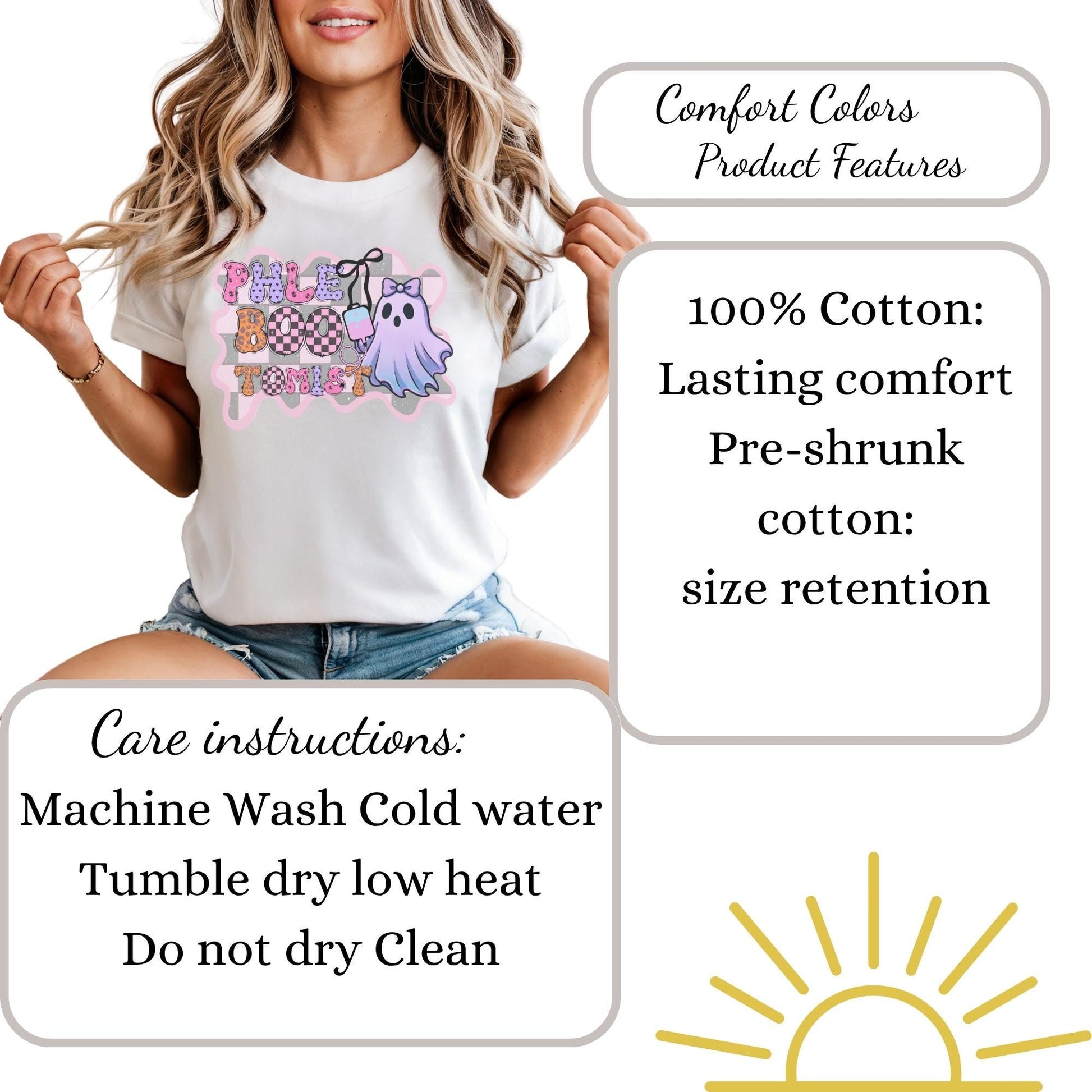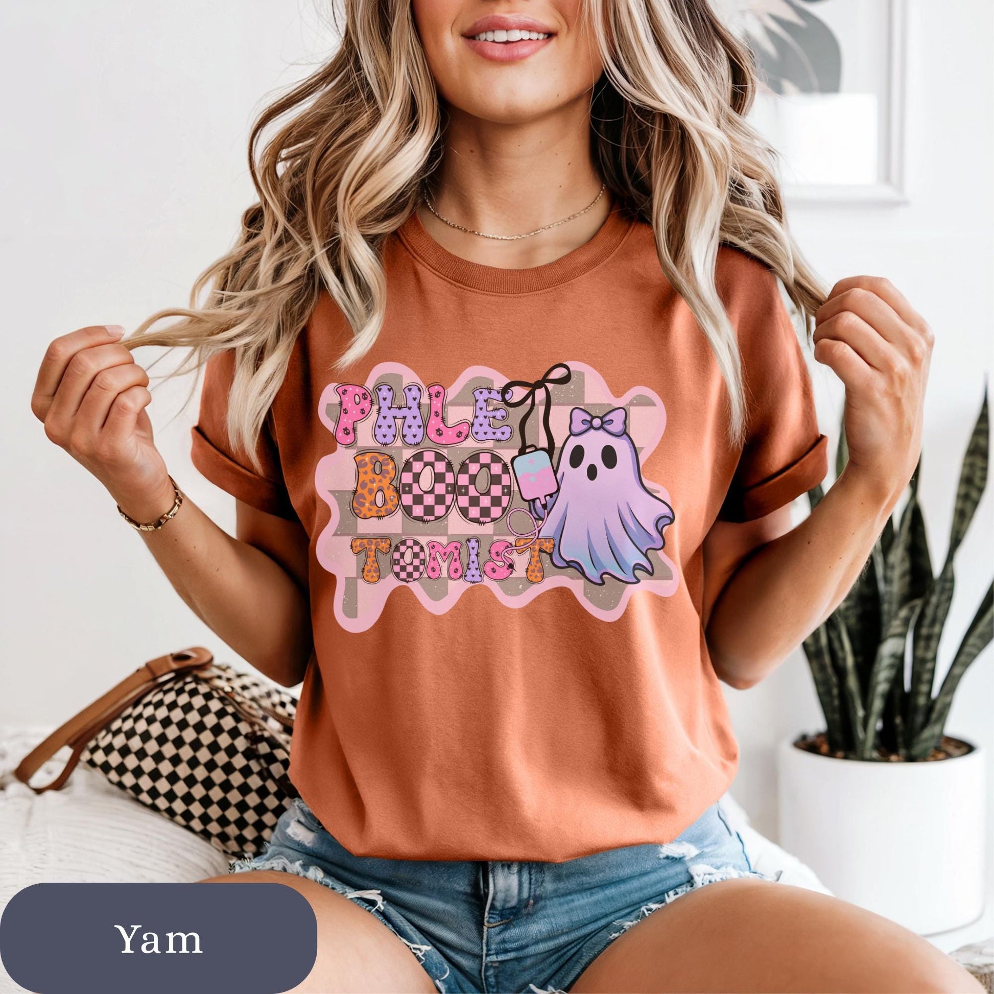 This Halloween Phlebotomist ghost retro boo shirt is perfect for medical lab techs looking for a fun and festive work t-shirt. It’s a funny cute ghost tee that makes a great Halloween costume for any medical assistant. This Halloween funny phlebotomist shirt makes the perfect gift idea for fall lab techs and medical lab assistants. Featuring a retro coquette style, this ghost boo t-shirt is great for any phlebotomist or lab tech looking to celebrate spooky season in style. Product Features • Comfort Colors 1717 unisex relaxed fit • 100% ring-spun cotton for ultra-soft feel • Garment-dyed for a vintage, lived-in look • Double-stitched sleeves and bottom hem for durability • Soft-washed and pre-shrunk to minimize shrinkage • Available in multiple trendy colors • Printed with high-quality professional inks Perfect For • phlebotomist Week gifts • halloween fall phlebotomy • medical lab tech • laboratory assistant Sizing Information • True unisex relaxed fit — size down for a more fitted look or size up for an oversized style • Please refer to the size chart in listing photos for measurements • Model is wearing size Medium for a relaxed fit Care Instructions • Machine wash cold inside out • Tumble dry low or hang dry for best longevity • Do not bleach • Do not iron directly on design