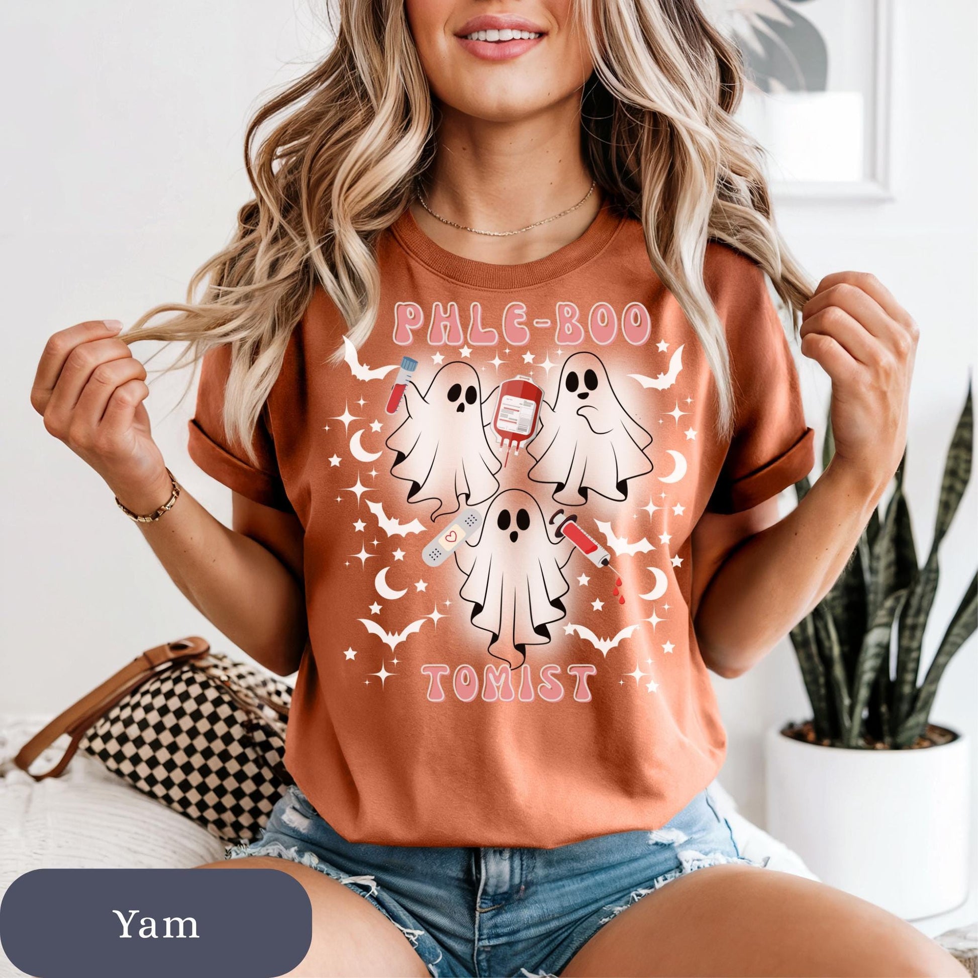 Halloween Retro Boo Crew t-shirt, phlebotomy technician crewneck, and ghost spooky season shirt make a fun and festive outfit. This phlebotomist tee is the perfect nurse lab tech gift and a must-have for any lab tech. Product Features • Comfort Colors 1717 unisex relaxed fit • 100% ring-spun cotton for ultra-soft feel • Garment-dyed for a vintage, lived-in look • Double-stitched sleeves and bottom hem for durability • Soft-washed and pre-shrunk to minimize shrinkage • Available in multiple trendy colors • Printed with high-quality professional inks Perfect For • phlebotomist Week gifts • halloween fall phlebotomy • medical lab tech • laboratory assistant Sizing Information • True unisex relaxed fit — size down for a more fitted look or size up for an oversized style • Please refer to the size chart in listing photos for measurements • Model is wearing size Medium for a relaxed fit Care Instructions • Machine wash cold inside out • Tumble dry low or hang dry for best longevity • Do not bleach • Do not iron directly on design