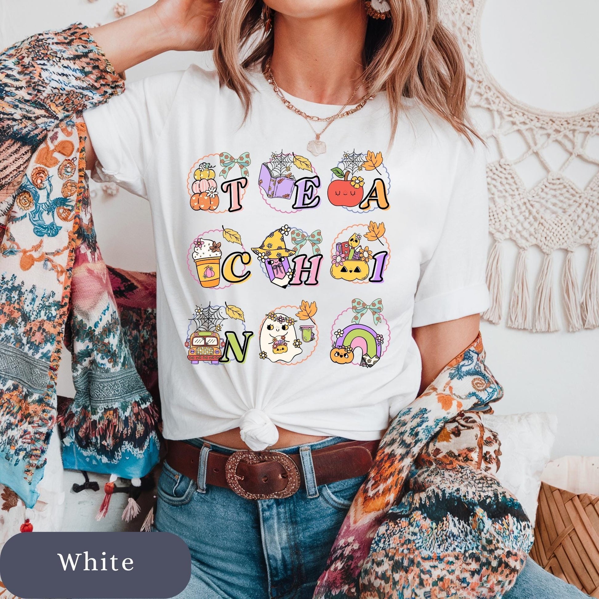 Halloween cute spooky ghost teacher shirt for elementary is perfect for autumn school celebration outfits. This matching t-shirt for kindergarten teacher features a coquette pumpkin design that adds festive charm to your teaching wardrobe. Product Features • Comfort Colors 1717 unisex relaxed fit • 100% ring-spun cotton for ultra-soft feel • Garment-dyed for a vintage, lived-in look • Double-stitched sleeves and bottom hem for durability • Soft-washed and pre-shrunk to minimize shrinkage • Available in multiple trendy colors • Printed with high-quality professional inks Perfect For Halloween Fall Autumn Teacher • Teacher back to school t-shirt • Teacher new school year outfit • new elementary school educator • new school year • Comfortable everyday wear for Educators Sizing Information • True unisex relaxed fit — size down for a more fitted look or size up for an oversized style • Please refer to the size chart in listing photos for measurements • Model is wearing size Medium for a relaxed fit Care Instructions • Machine wash cold inside out • Tumble dry low or hang dry for best longevity • Do not bleach • Do not iron directly on design