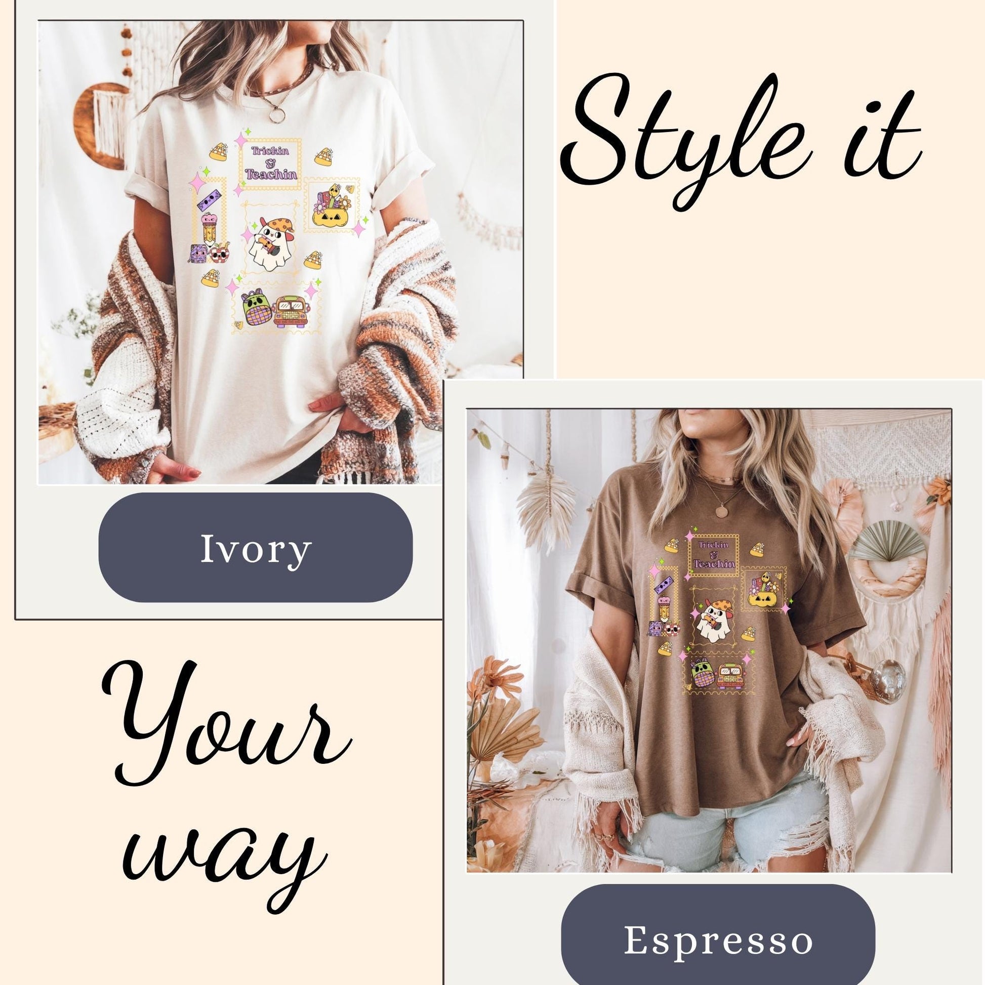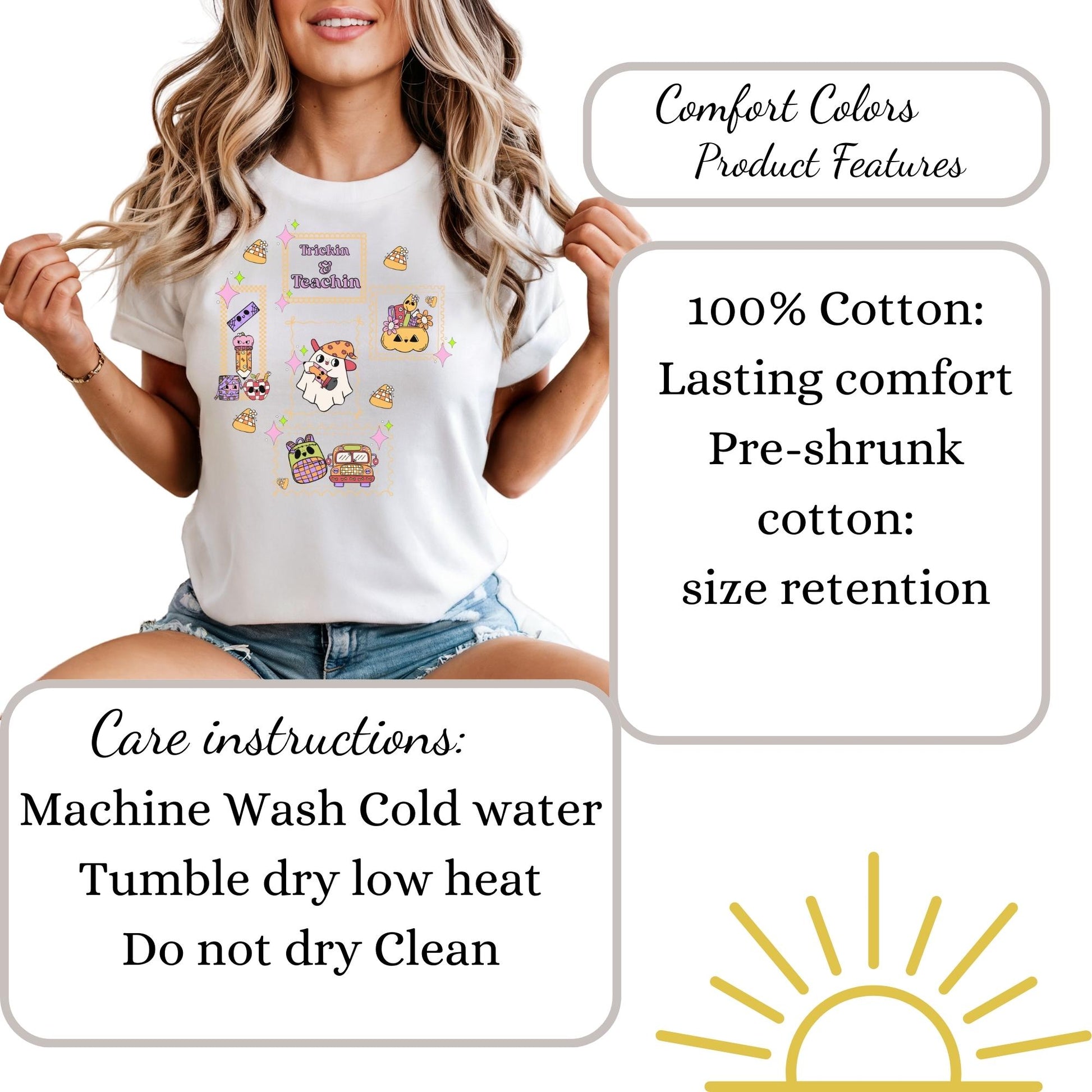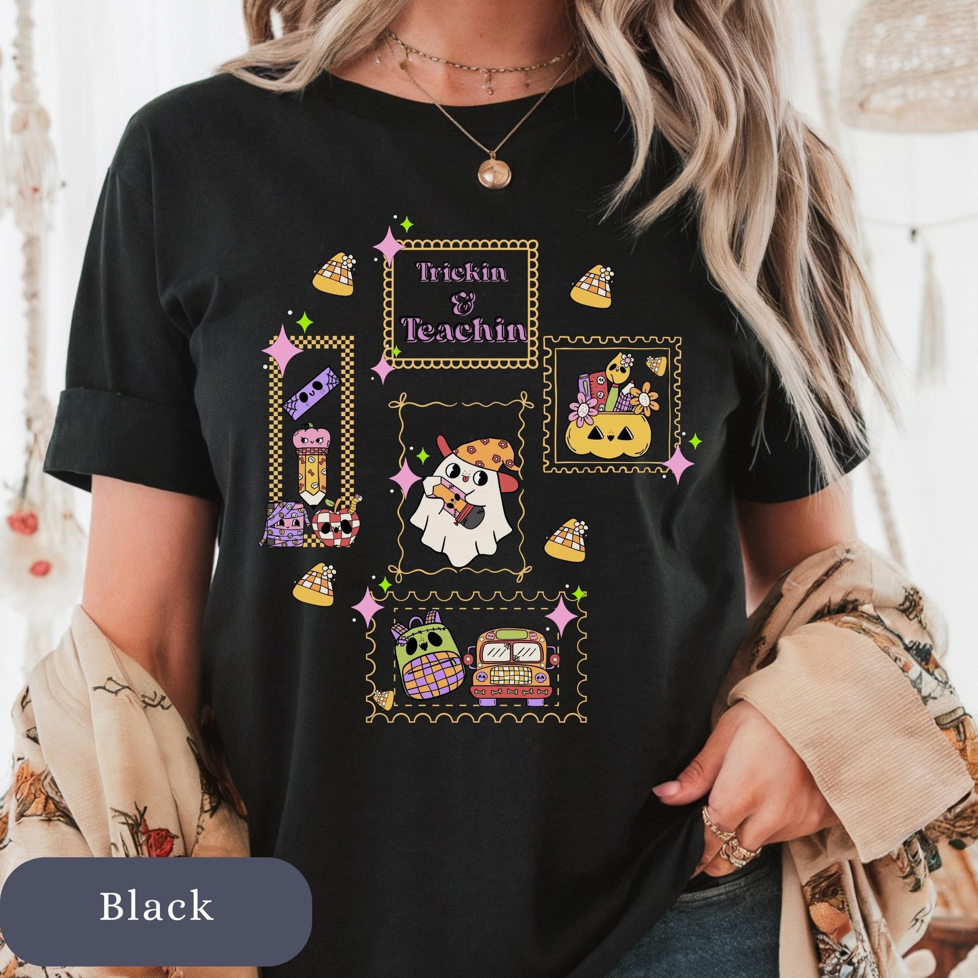 Trickin cute spooky ghost teacher tshirt for elementary, first grade, and new teacher tee. Halloween autumn coquette matching shirt for fall gift. Product Features • Comfort Colors 1717 unisex relaxed fit • 100% ring-spun cotton for ultra-soft feel • Garment-dyed for a vintage, lived-in look • Double-stitched sleeves and bottom hem for durability • Soft-washed and pre-shrunk to minimize shrinkage • Available in multiple trendy colors • Printed with high-quality professional inks Perfect For Halloween Fall Autumn Teacher • Teacher back to school t-shirt • Teacher new school year outfit • new elementary school educator • new school year • Comfortable everyday wear for Educators Sizing Information • True unisex relaxed fit — size down for a more fitted look or size up for an oversized style • Please refer to the size chart in listing photos for measurements • Model is wearing size Medium for a relaxed fit Care Instructions • Machine wash cold inside out • Tumble dry low or hang dry for best longevity • Do not bleach • Do not iron directly on design